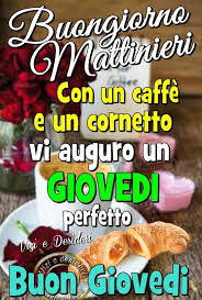 So bene che amate le belle immagini per questo cerco di inserire ogni giorno quante più raccolte posso così che ne abbiate su ogni argomento. Giovedì immagine 3600 - Buongiorno Mattinieri Con un caffè e un cornetto vi auguro un Giovedì perfetto Buon Giovedì - Le migliori immagini gratuite di Giovedì per Whatsapp Facebook. 53611034 - Tazza di caffè con cornetto e note buongiorno sul turchese tavolo.